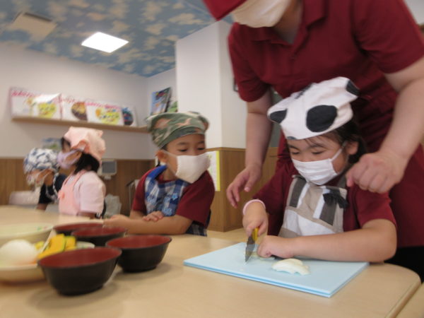 野菜切りでは、みんなドキドキ💓しながら頑張りました。💪